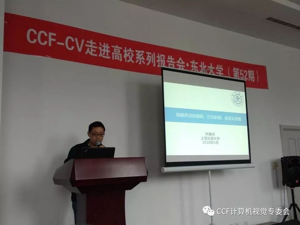 2018年5月26日上午,由中国计算机学会计算机视觉专委会主办,东北大学机器人科学与工程学院、信息科学与工程学院承办的第五十二期CCF-CV走进高校系列报告会“计算机视觉前沿技术及应用”在东北大学综合楼209学术报告厅成功举行。