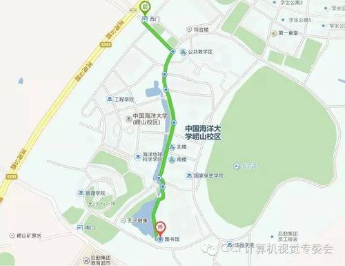 会场路线图(中国海洋大学崂山校区西门至图书馆)