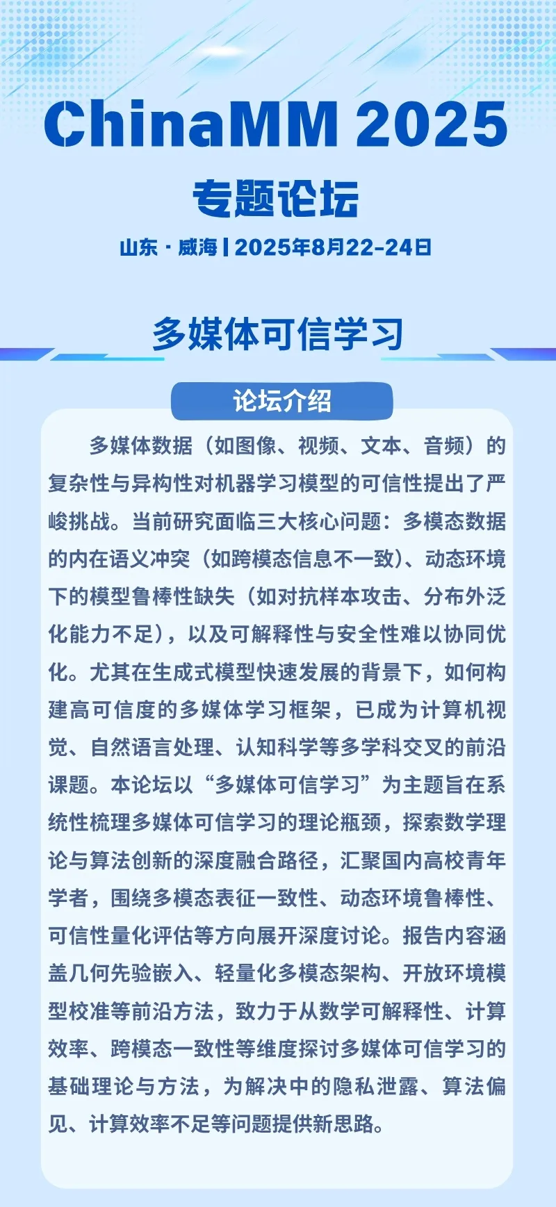 ChinaMM 2025专题论坛 | 多媒体可信学习