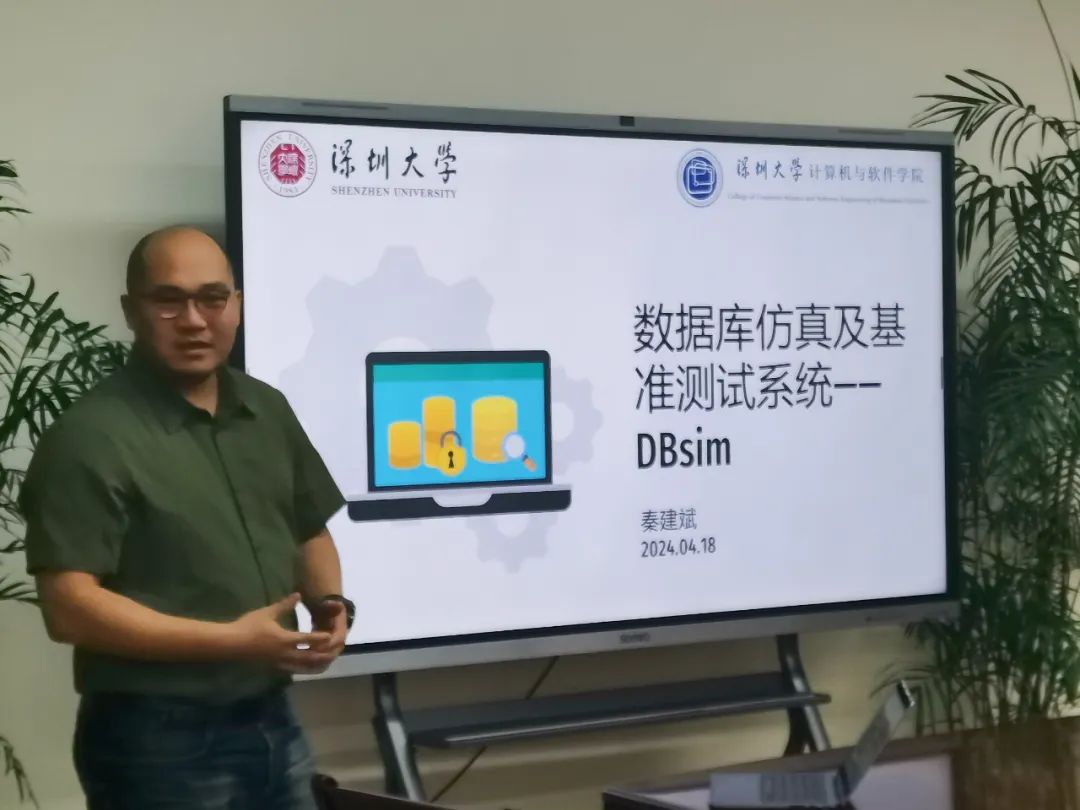 在报告环节,三位专家结合自身的研究成果,给大家带来了精彩的前沿成果分享。首先,秦建斌教授以《数据库仿真(DBSIMULATION)系统实现:如何生成高仿真的数据库负载》为题进行报告。秦建斌教授首先介绍全球现有的数据集及其应用场景,然后推广到工程领域,列举各大领域具有代表性的仿真平台。报告分析了传统的基准工具存在的痛点,最后从不同角度探讨数据仿真及基准测试系统的现状、应用、不足和展望。