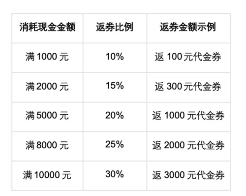 消耗金额越高,返利比例阶梯式飙升,