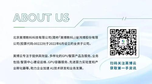 北京英博数科科技有限公司(简称“英博数科”)是鸿博股份有限公司(股票代码:002229)于2022年6月设立的全资子公司,是业务包括:智算中心建设运维、GPU容器服务、先进算力实验室和产业孵化器等,助力企业加速AI技术研发和业务发展。