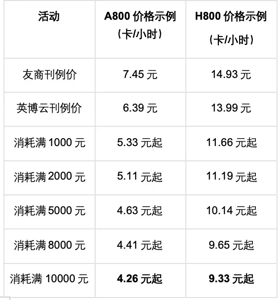 满足规则,A800低至4.26元/卡/小时起,H800低至9.33元/卡/小时起