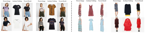 图5在VITON-HD数据集(左)和Dress Code数据集(右)上的定性结果展示