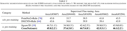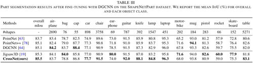 我们在多个基准上的实验证明了对点云分类和分割结果的改进,并且学习到的表征可以跨领域推广,包括(1)三维对象形状分类,(2)三维对象部分分割和(3)三维场景语义分割。