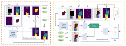 图3人体解析估计模块(左)与肢体感知纹理融合模块(右)