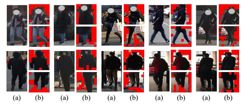 图4 ART模块生成的部件掩码的可视化结果,红色块表示丢弃的令牌