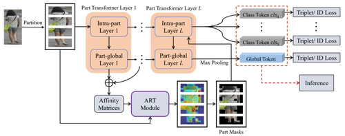 除此之外,为了捕获有效的显著性区域信息,本文提出ART模块,基于Part-global Layer中的亲和力矩阵扩大部件感知区域,生成部件掩码进而有助于在部件交互学习过程中保留每个条纹中包含较多信息的令牌,从而有利于准确学习人体部件的细粒度信息。