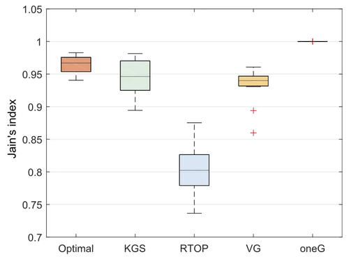 我们在不同的代表性场景中使用了多个评价指标对论文所提出的KGS方案进行了评估。通过用户平均QoE、公平性、资源利用率、时间复杂度等指标验证了KGS方案的有效性。