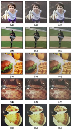 图3 NSN网络模拟效果示例图。(a1)-(e1)为原始图像,(a2)-(e2)真实的P-C图像,(a3)-(e3)为模拟图像。