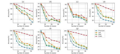 连续学习基线:本文评估的代表性连续学习基线方法包括了:Finetune(微调)、LwF(知识蒸馏)、EWC(参数保护)、iCaRL(基于回放数据)。