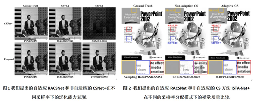 近年来,基于深度学习的图像压缩感知(CS)方法取得了显著的进展,并被应用在多个领域,如单像素成像、磁共振成像(MRI)和图像传输。然而,大多数CS方法的采样矩阵是固定的,只能处理一种采样率(如图1所示),且他们对图像不同区域采用相同的采样率,导致图像CS重建性能的降低(如图2所示)。针对这个问题,本文提出了一种率自适应的图像压缩感知网络(RACSNet),它能够根据图像内容特征实现自适应的采样率分配,从而提升图像重建的质量。