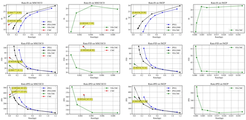 图3 在MSCOCO和IM2P数据集上的率失真曲线