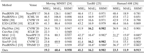 视频预测任务旨在根据连续的历史视频帧,对视频的未来状态给出近似估计,并输出预测视频片段,可以应用于雷达气象图预测、交通热力图预测、自动驾驶以及机器人控制等实际应用场景。然而现有的视频预测方法均假设输入视频帧为无损表示,不包含任何的噪声,但在实际应用场景中视频预测会受到各类噪声例如遮挡噪声、对抗噪声的干扰,影响模型的预测结果。