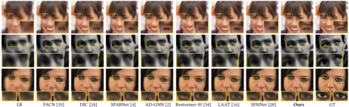 人脸超分辨率旨在从低分辨率人脸图像重建高分辨率人脸图像。现有方法通常采用编码器-解码器结构提取面部结构特征,但直接降采样不可避免地引入失真,尤其对边缘等高频特征影响显著。为解决此问题,我们提出基于小波变换的特征增强网络:通过小波变换无损分解输入特征为高频与低频分量,并分别处理以减轻特征失真。为提升面部特征提取效率,进一步引入全域Transformer模型增强局部、区域及全局面部特征。此类设计使本方法无需像传统方案那样堆叠大量模块,即可实现更优性能。实验表明,本方法在性能、模型规模与运行速度之间实现了有效平衡。