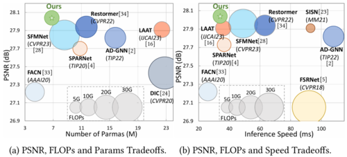 本文在2个公开基准上测试了我们的方法和相关基线的性能。性能和模型尺寸和推理速度如下表所示,我们的方法的性能要远优于现有方法: