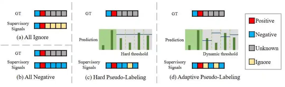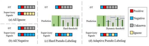 在分组标签的设置中,未知标签仍然是核心问题。我们提出了一种简单但有效的方法来处理未知标签的问题。一种简单的方法是使用硬阈值来区分哪个标签是真正的负标签,但这将不可避免地引入一些噪声。因此,我们提出了一种自适应伪标签方法,该方法动态调整阈值以减少为未知标签打标签时的噪声。我们的方法不涉及类别之间的任何关系或数据的先验统计信息,可以被视为一个强大的基准方法。