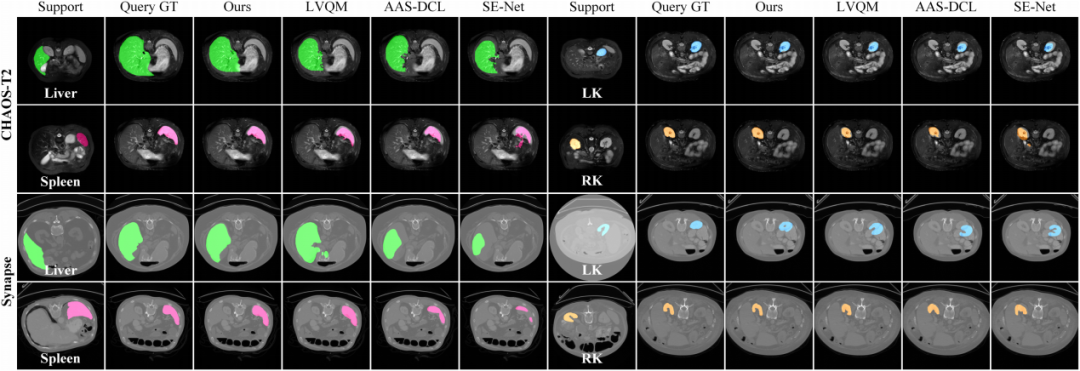 图2 CHAOS-T2和Synapse两个数据集上的腹部器官分割结果可视化