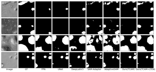 可视化结果如图4显示,本方法能够更精准地捕捉火星地形细节,显著减少误分割与漏分割。