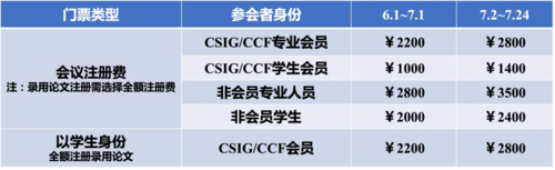 会议早鸟注册明日即将截止!2024年7月1日前通过大会官网注册缴费即可享受最优惠价格。如果您是CSIG/CCF会员,参会价格仅为2200元;如果您是CSIG/CCF学生会员,参会价格仅为1000元。