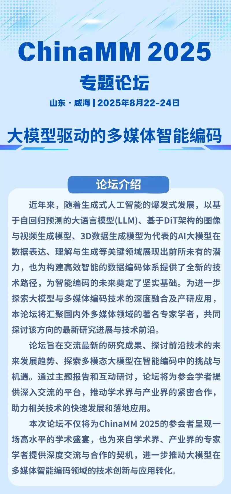 ChinaMM 2025专题论坛 大模型驱动的多媒体智能编码