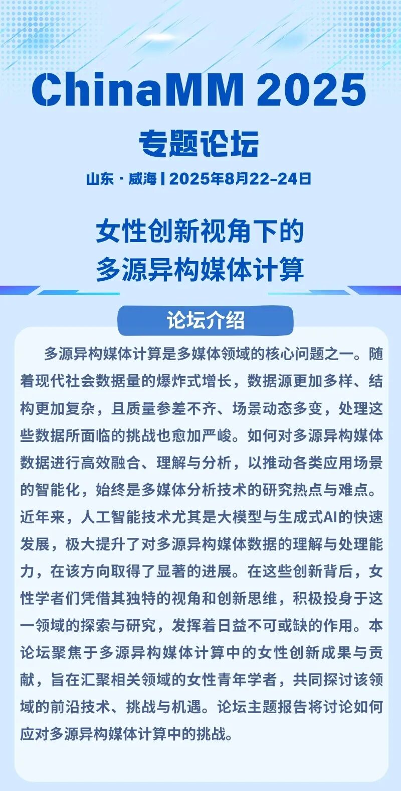 ChinaMM 2025专题论坛 女性创新视角下的多源异构媒体计算