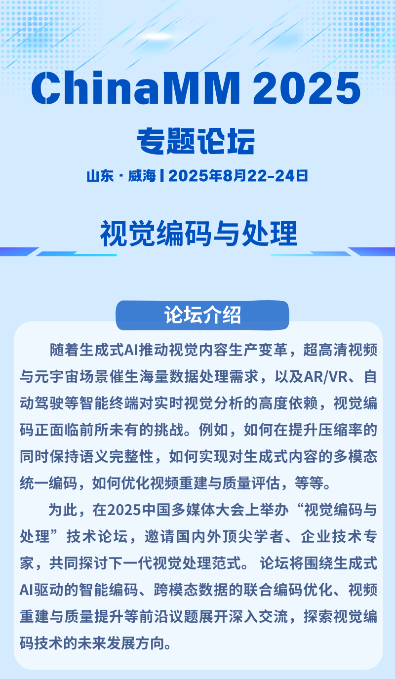 ChinaMM 2025专题论坛 | 视觉编码与处理