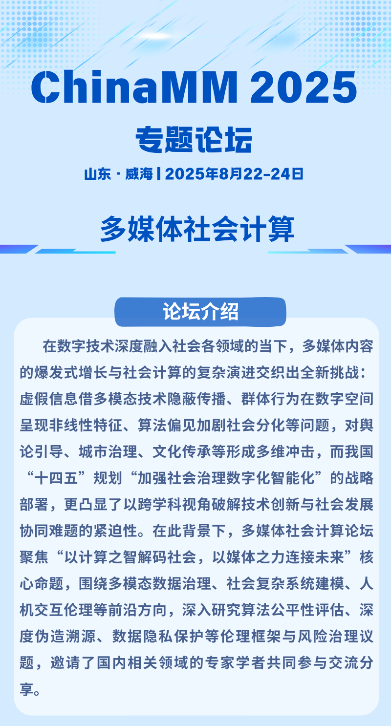 【早鸟注册倒计时4天】ChinaMM 2025专题论坛 多媒体社会计算