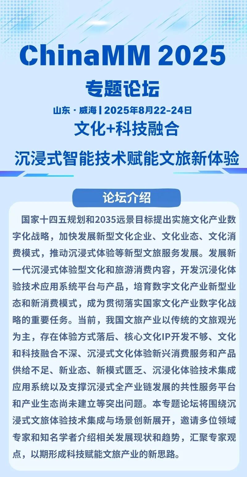 【4天倒计时】ChinaMM 2025专题论坛 | 文化+科技融合:沉浸式智能技术赋能文旅新体验