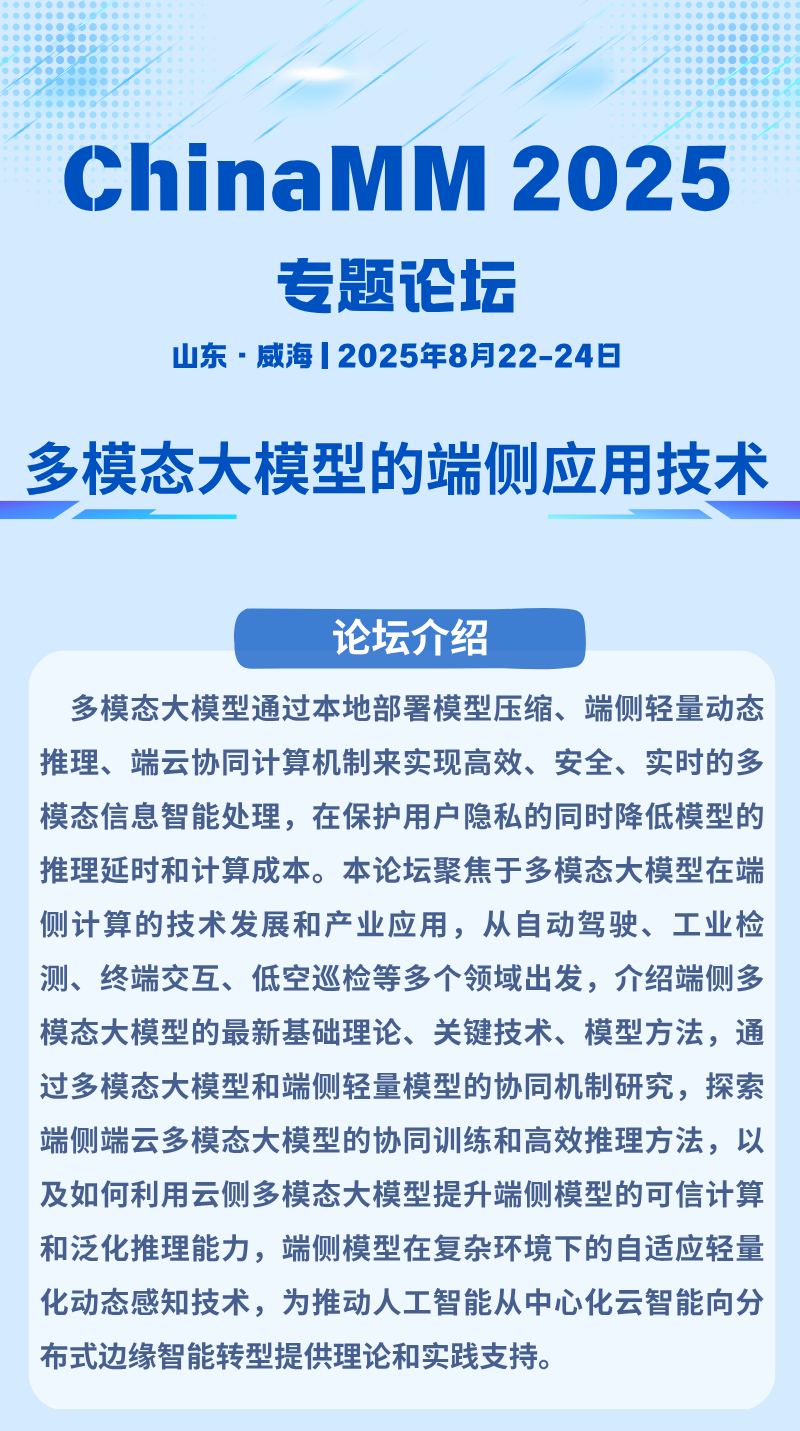 ChinaMM 2025专题论坛 | 多模态大模型的端侧应用技术