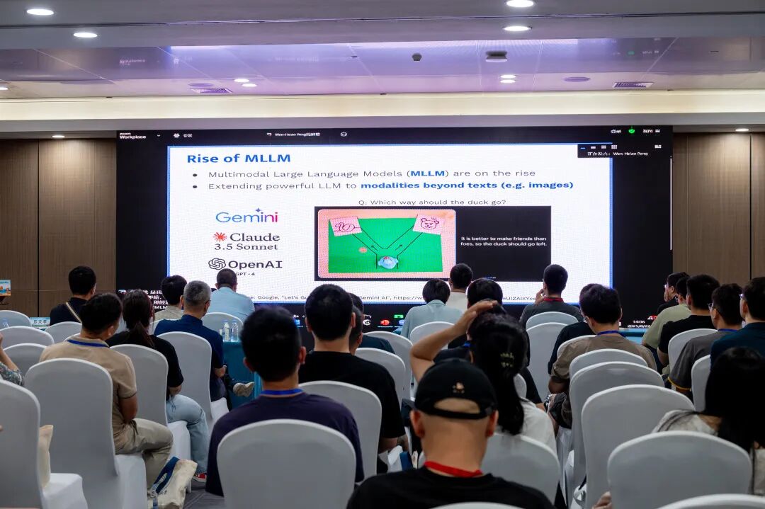 多模态大模型的理解和生成由北京大学彭宇新教授、南京林业大学唐金辉教授和清华大学王鑫副研究员组织。本场活动邀请了韩军功、朱军、王国庆、关超宇、彭宇新5名专家,围绕“多模态大模型的理解与生成”主题,聚焦多模态语义对齐、跨模态生成、多模态内容理解、大模型轻量化等前沿方向,探讨大模型在视觉- 语言理解、音视频生成、低空经济、硬件部署等领域的创新与应用,并展望多模态生成式智能技术的未来趋势与潜在突破。清华大学韩军功教授就多模态场景理解的特征表达演进与发展趋势进行了详细介绍。清华大学朱军教授就基于薛定谔桥模型的跨模态音频生成及图像翻译应用进行了详细介绍。电子科技大学王国庆教授就多模态低空智感大模型在耕地保护、河流治理等低空经济场景的构建与应用进行了详细介绍。清昴智能科技(北京)有限公司关超宇CEO就面向国产化硬件的Deepseek-R1模型量化方案进行了详细介绍。北京大学彭宇新教授就细粒度多模态大模型的可控视觉内容生成进行了详细介绍。本讲习班讨论了多模态理解与生成的核心挑战,促进了学术界与产业界的深度交流,并为未来技术趋势和潜在突破提供了新思路。