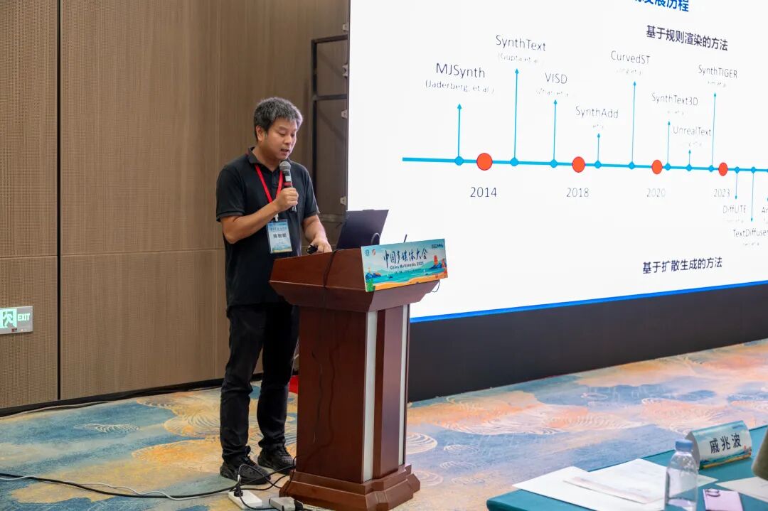 大模型高效数据合成:挑战与前沿由哈尔滨工业大学(威海)张维刚教授、戚兆波副教授、中国科学院大学黄庆明教授及北京工业大学尹宝才教授联合组织。本场活动邀请了陈智能、赵洲、刘学博、穆尧4名专家,聚焦数据合成技术突破数据瓶颈的核心挑战,围绕生成策略、质量评估与风险防控等方向展开研讨。复旦大学陈智能教授就面向场景文本识别的数据生成方法进行了详细介绍。浙江大学赵洲教授就跨模态内容高效合成的解耦级联架构与平滑推理机制进行了详细介绍。哈尔滨工业大学(深圳)刘学博副教授就大模型数据合成从通用到行业的对齐实践进行了详细介绍。上海交通大学穆尧助理教授就生成式大模型驱动的具身智能数据引擎进行了详细介绍。本专题论坛针对数据枯竭与模型崩溃风险,增强了听众对合成数据的质量评估与安全边界体系的技术理解,同时为该领域的未来发展提供了宝贵的建议。